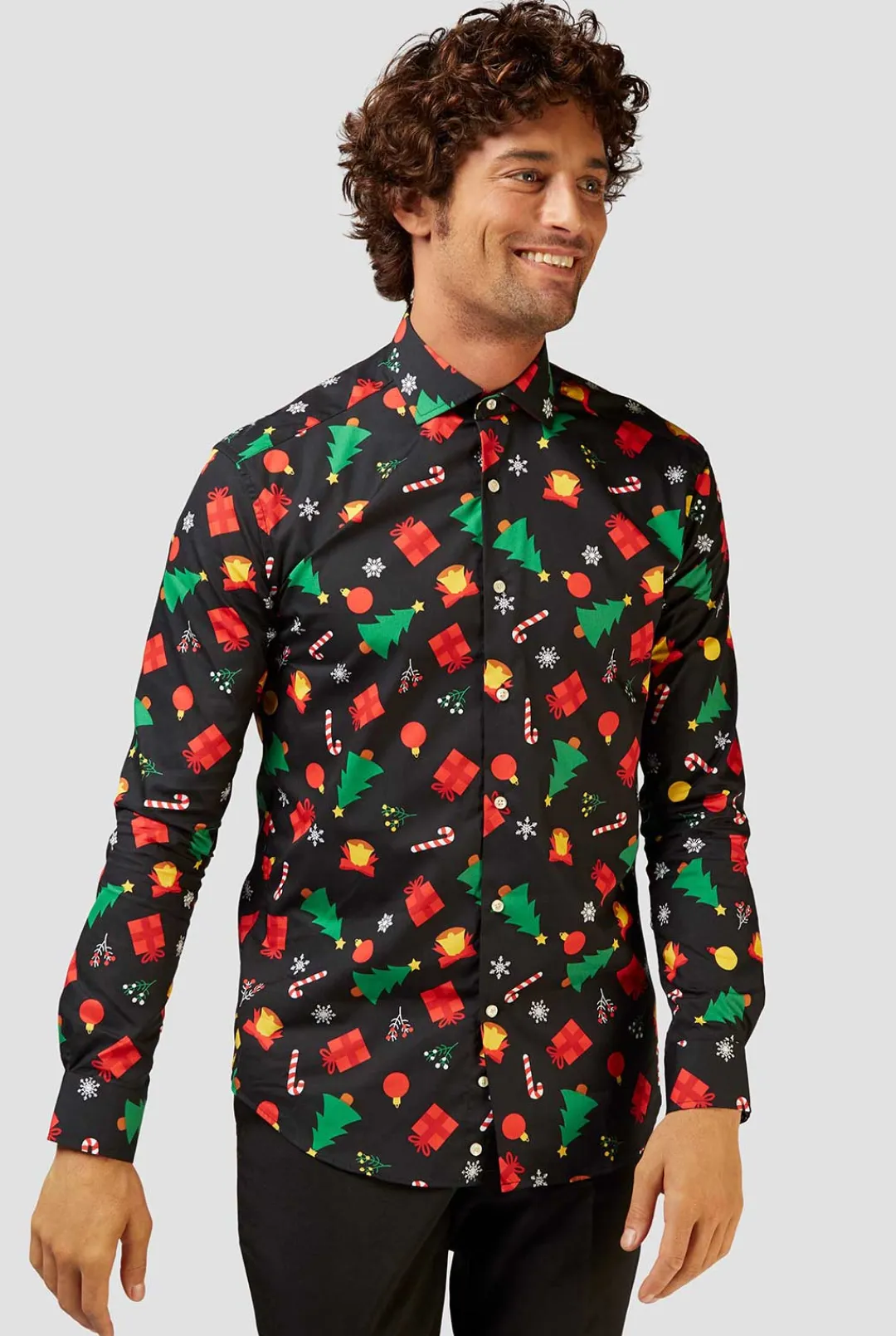 Christmas Is The Ideal Occasion To Incorporate Some Festiveness Into Your Outfit. This Christmas Shirt With Colored Icons Can Be Paired With All Kinds Of Garments, From Casual To Formal, And Instantly Provides A Festive Look. In Other Words: It’s Great For Every Holiday-Related Occasion.