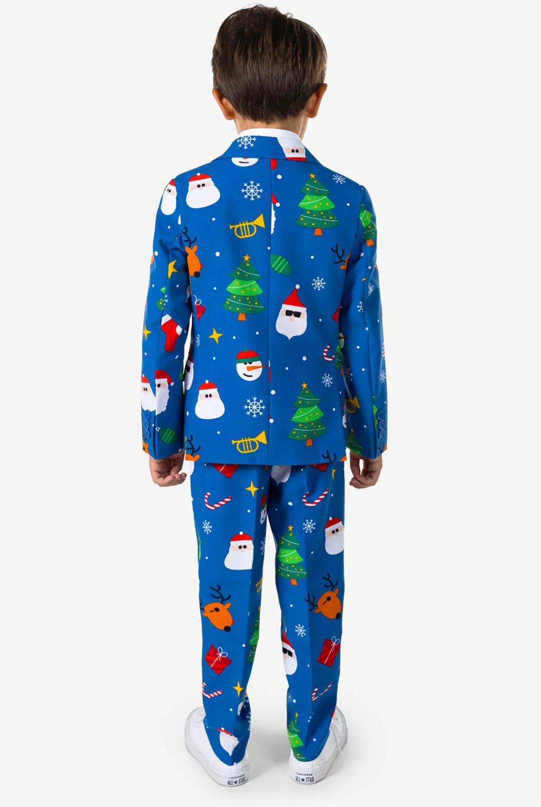 Does Your Kid Want To Look Extra Cool And Stand Out This Holiday Season? Look No Further Than The Blue Festivity Suit. It Has Santa, Reindeer, Christmas Trees And Glittering Stars, All It Needs Is You Wearing It!