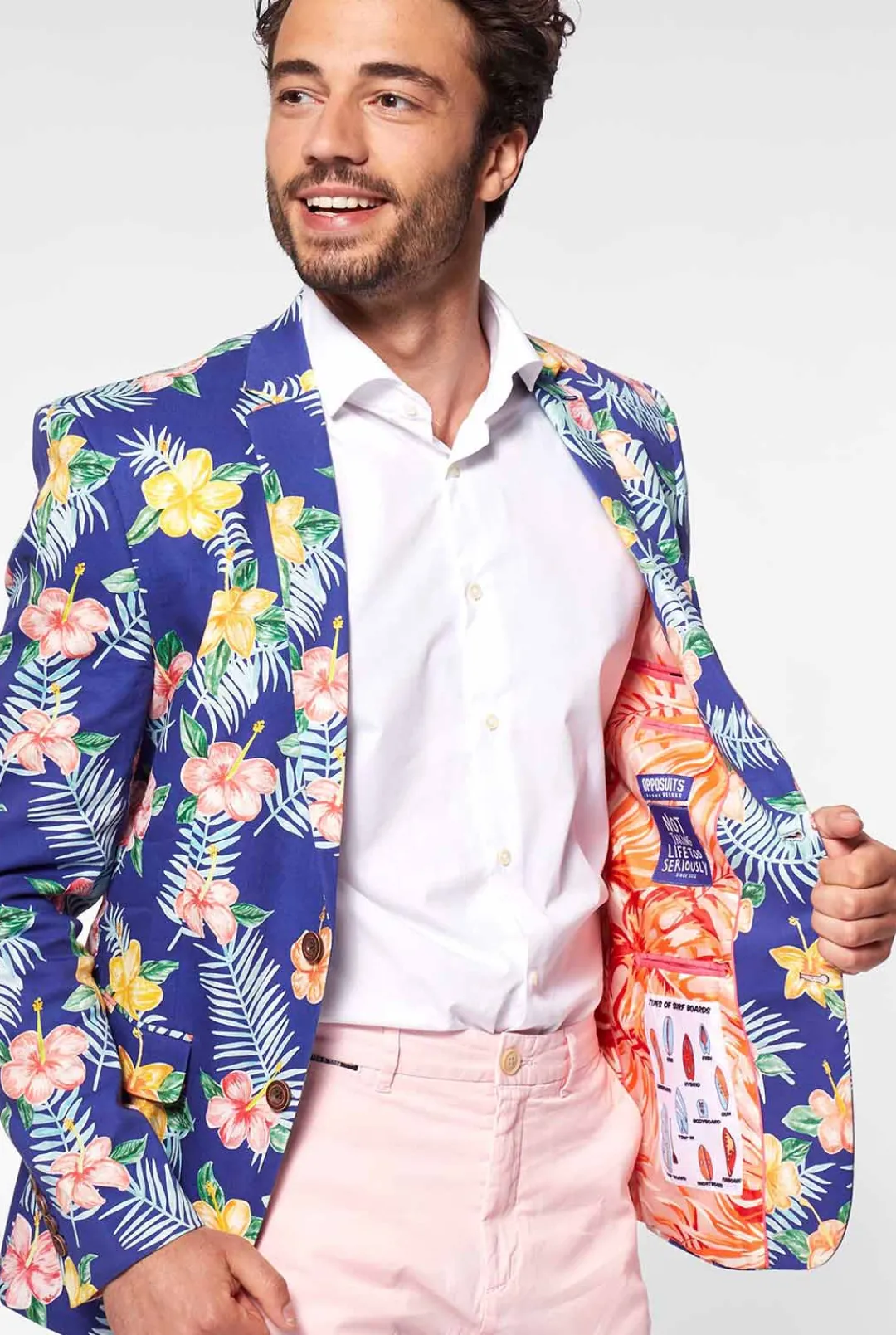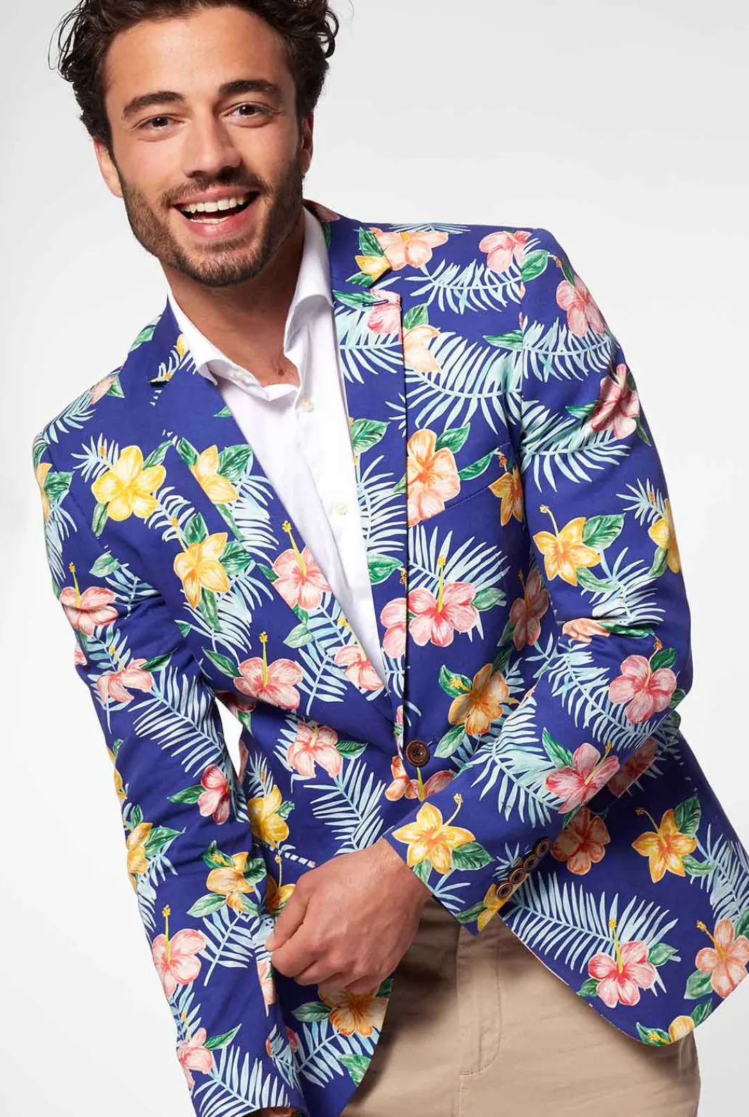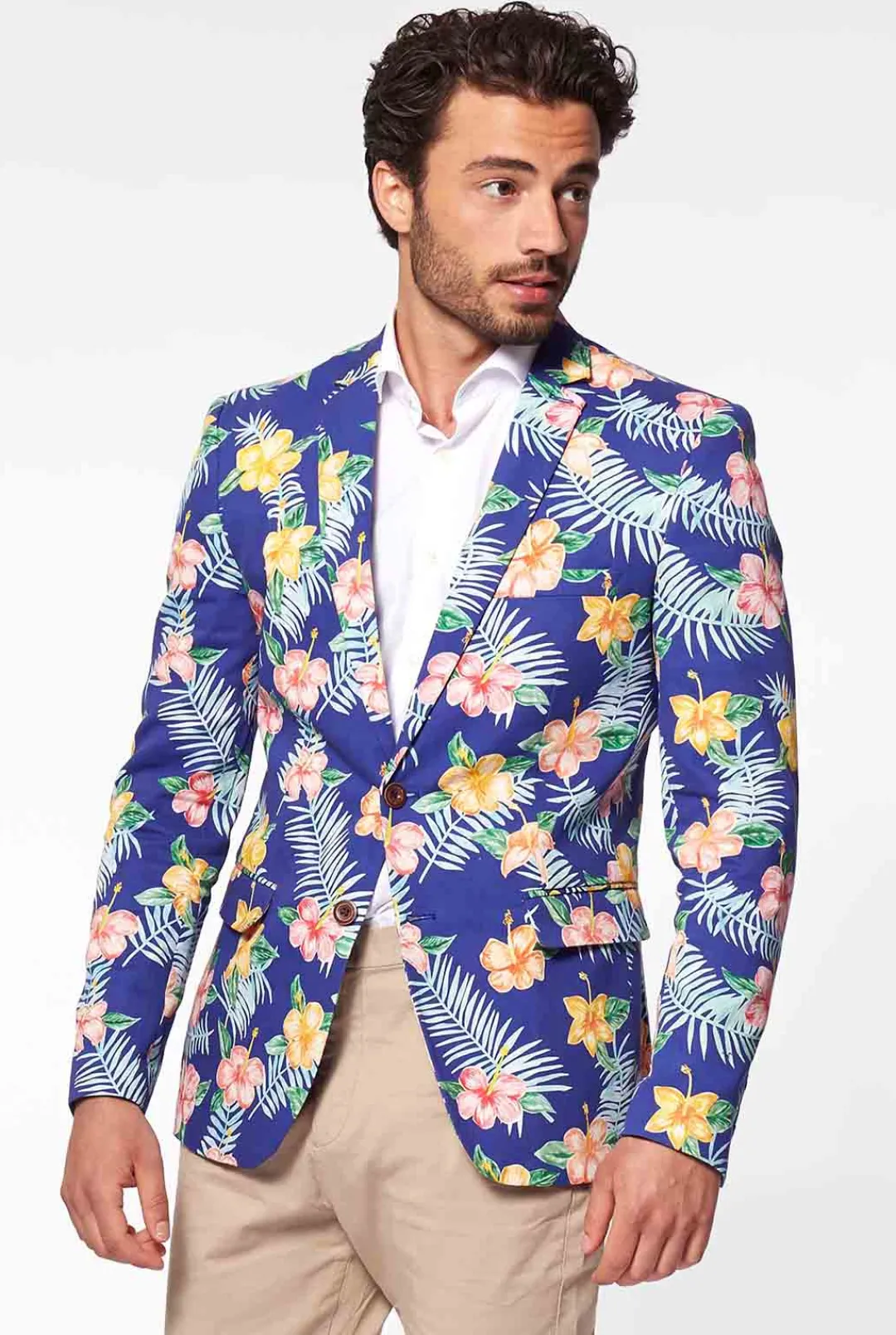 Delight You And Everyone Around You Wearing Our Blue Tropical Flower Opposuits Deluxe Blazer. Bold In Color And Unique Shapes Are A Sure Way To Get A Conversation Started. Hand-Painted Yellow And Pink Tropical Flowers On A Deep Ocean Blue Colored Blazer. Made Of Lightweight High-Quality Cotton, Finished Off By Wooden Buttons. This Opposuits Deluxe Blazer Is Totally Summer-Proof. Just Give Your Warm-Weather-Wardrobe An Upgrade With This One.