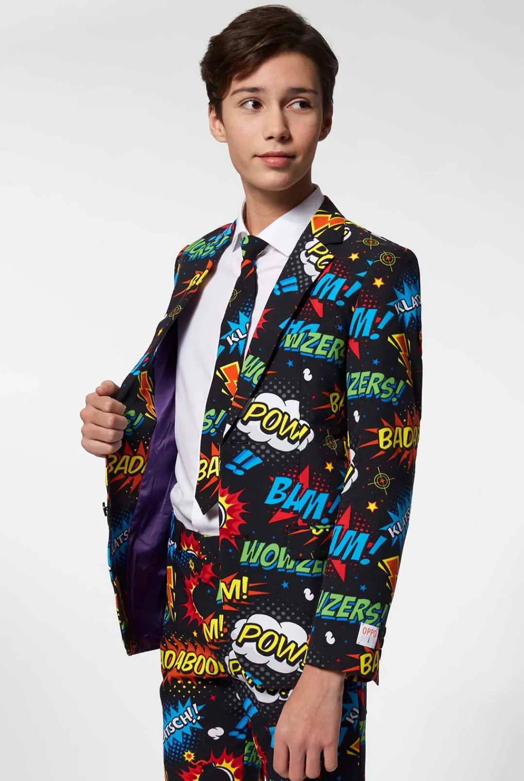 Wowsers! Say Goodbye To Those Boring Black And Blue Suits And Say Hello To Our Comic Book Themed Badaboom Suit. Whatever Kind Of Event You’Ll Be Going To, This Suit Will Make Sure Your Attendance Won’T Go Unnoticed. Badaboom Badabeng!