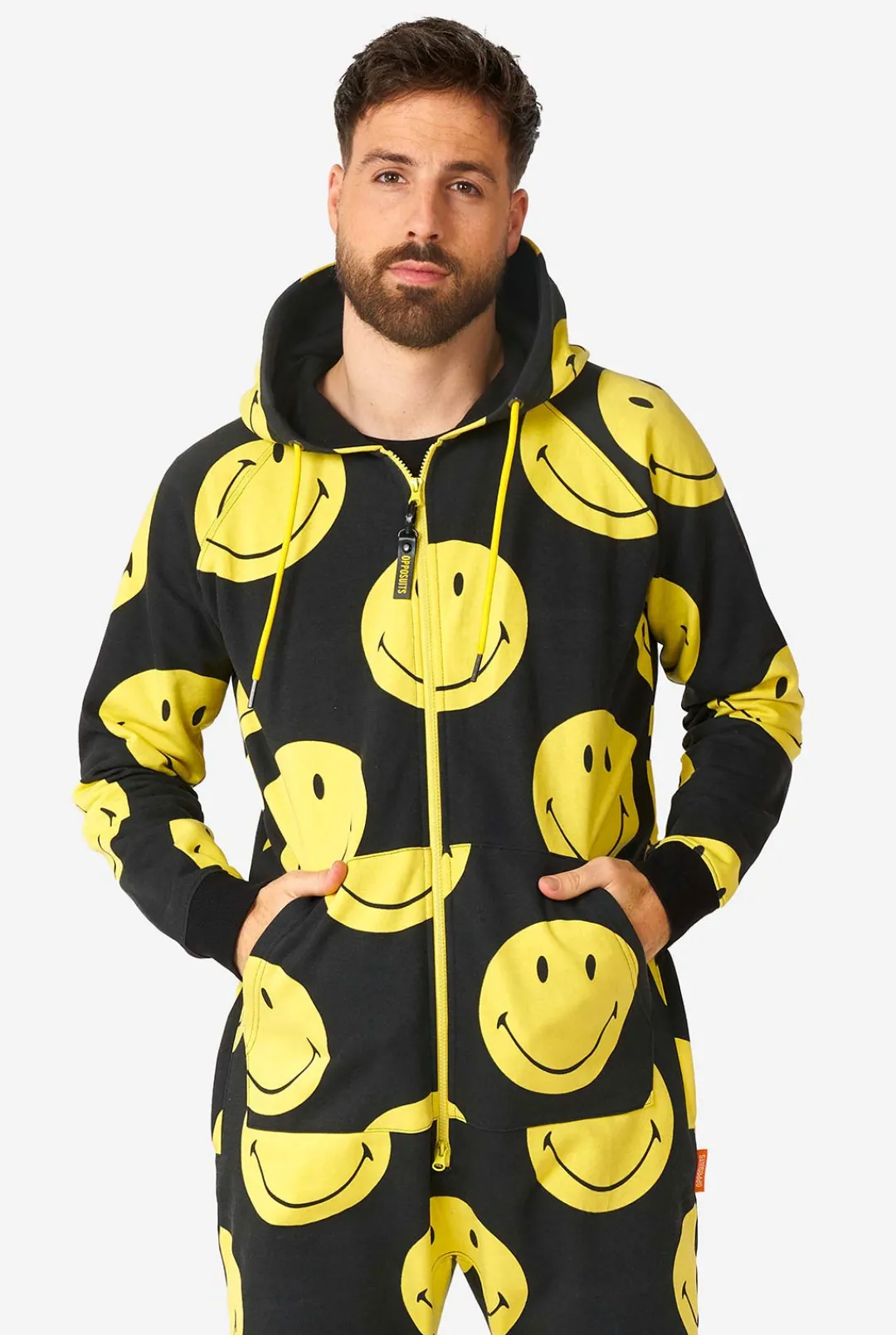 The Unisex Smiley® Classic Opposuits Onesie Features Two-Way Zippers, High-Quality Kangaroo Pockets And Side Pockets. The Hoodie Has Adjustable Cords For A Perfect Fit.