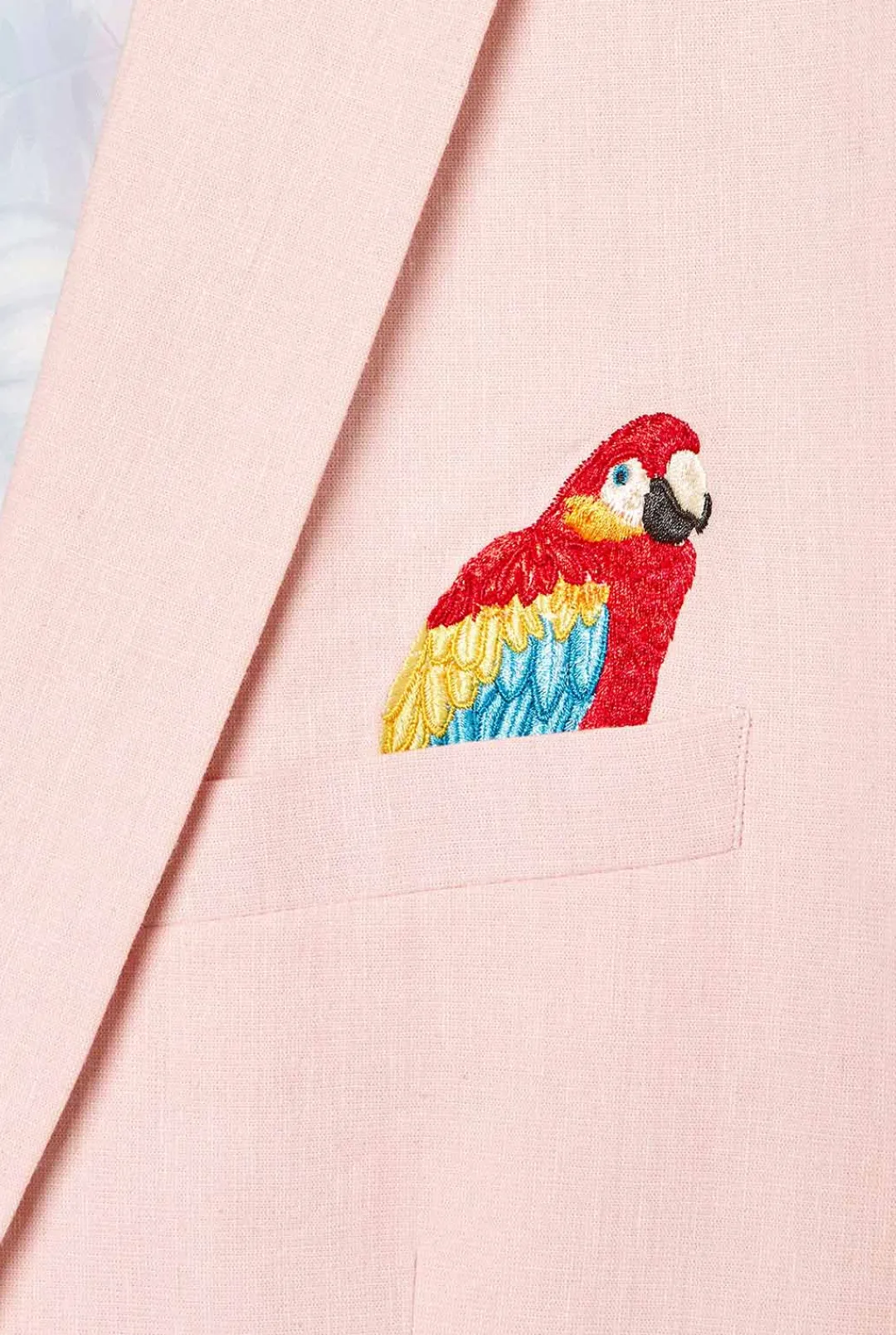 Spring And Summer Are The Seasons To Show Your Vivid Style Choices. This Soft Pink Blazer Is Made Of A Breezy, High-Quality Cotton-Linen Blend And Therefore Perfect To Keep You Cool While Maintaining A Sharp Look. Topped Off With Eye-Catching Embroidered Parrots And A Palm Leaves Lining, This Jacket Has It All: Fun, Luxury And Style.