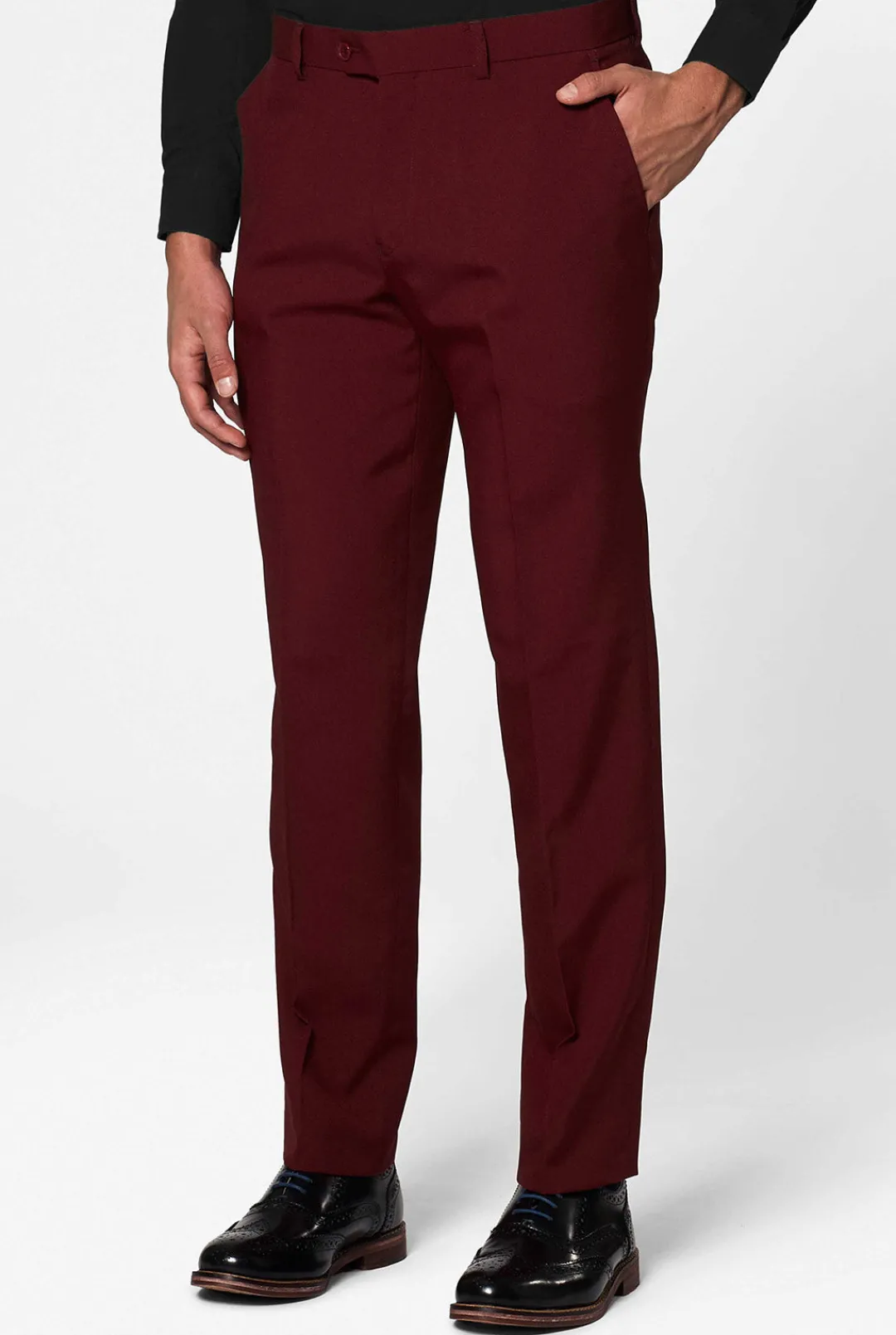It’s Attitude And Nonchalant Coolness All The Way When It Comes To This Solid Burgundy Suit. It Adds Bold Color And Contemporary Appeal To Your Wardrobe And Is Bound To Get You Noticed. Let’s Make Every Occasion As Extraordinary As You Are With This Deep Red Ensemble!
