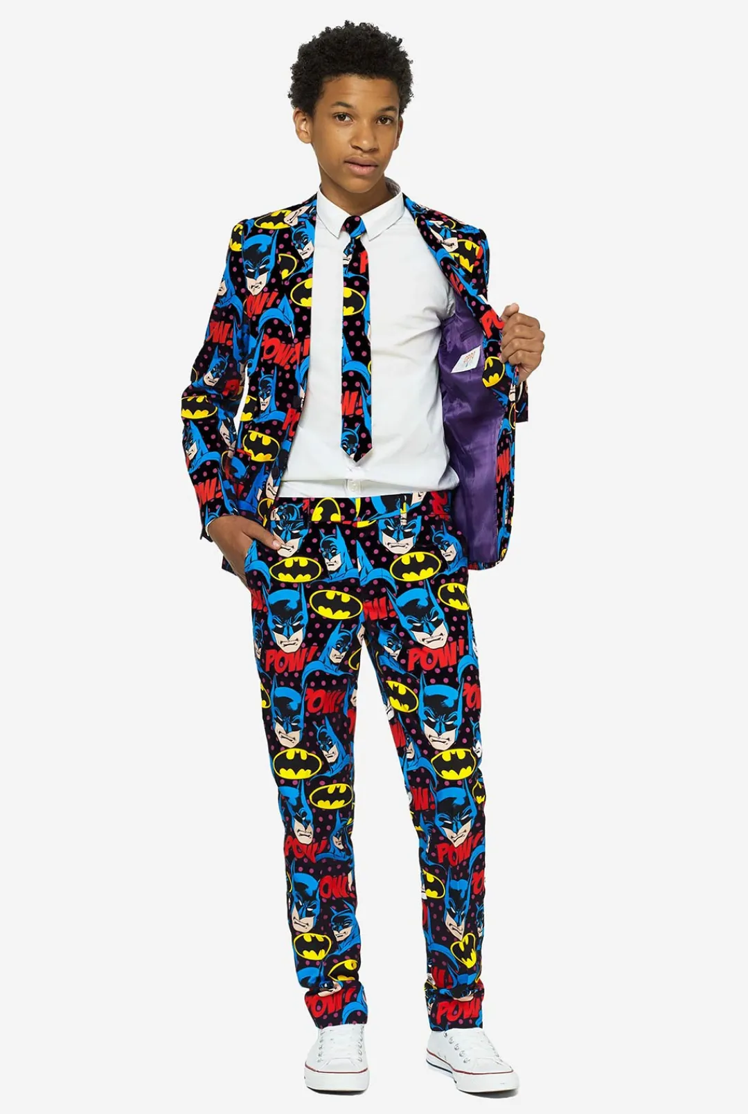 Batman Is Always Five Steps Ahead Of His Foes. Be Like The Caped Crusader And Get Five Steps Ahead Of Your Frenemies By Wearing This Batman™ Suit. The Outfit Includes Both Fun And Style With Its Batman Print And Classy Fit, So Get Ready To Make A Hero-Worthy Fashion Statement.